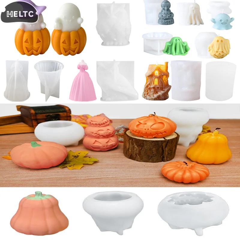 Halloween DIY Halloween Ghost Pumpkin Silicone Mold for Aromatherapy Candle 3D Pumpkin Candle Stand – Spooky Decor Crafting Tool
