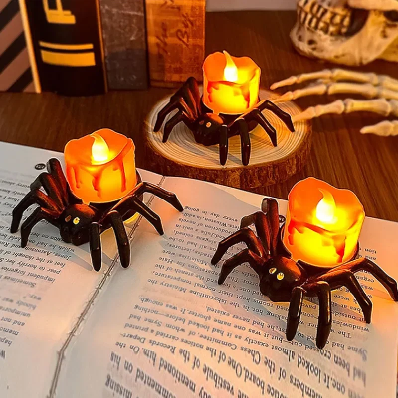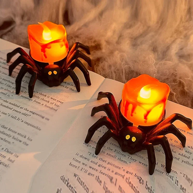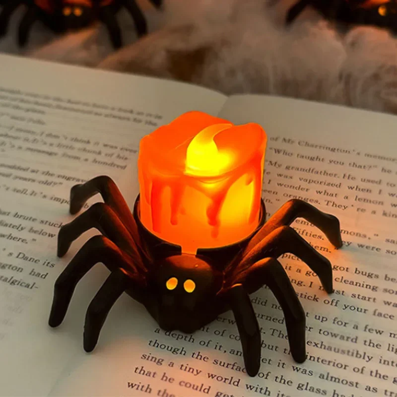 Halloween Decorations LED Candle Light Plastic Spider Pumpkin Lamp for Home Bar Haunted House Halloween Party Decor