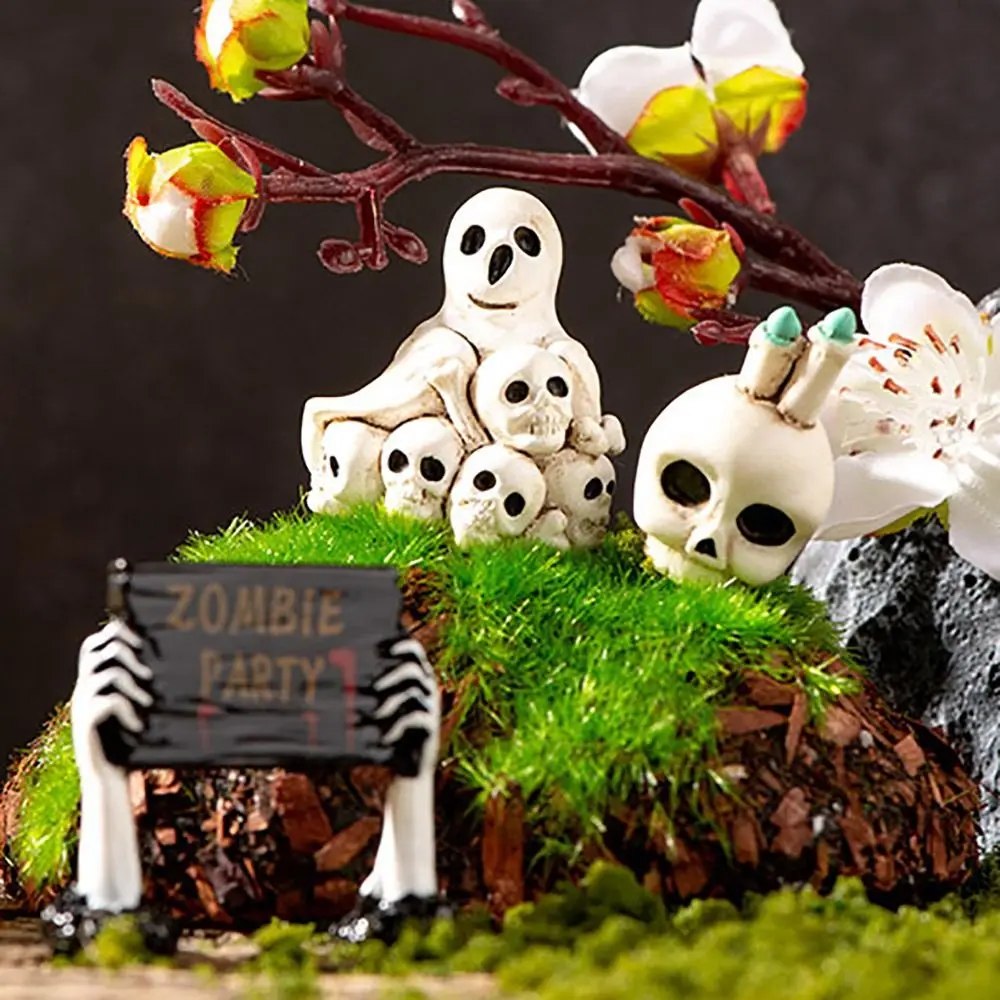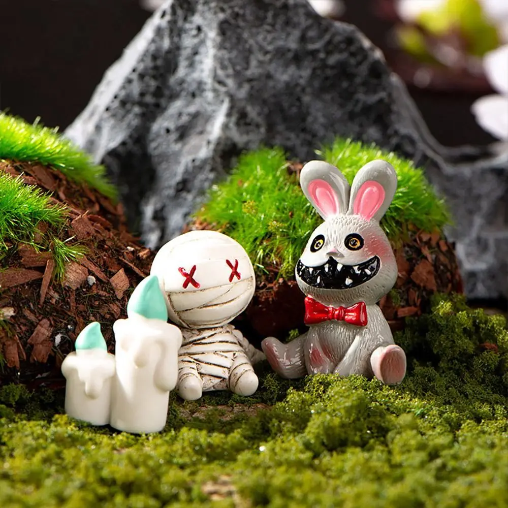 Mini Halloween Miniature Figurine Candle Skull Halloween Cartoon Scary Rabbit Statue Micro Landscape Resin Desktop Knick-knack
