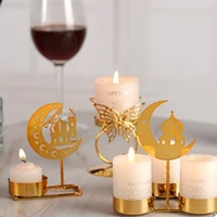 Gold Eid Mubarak Candles Holder Metal Art Craft Home Desktop Decoration Ornaments For Eid Mubarak Decoration Candlestick Support