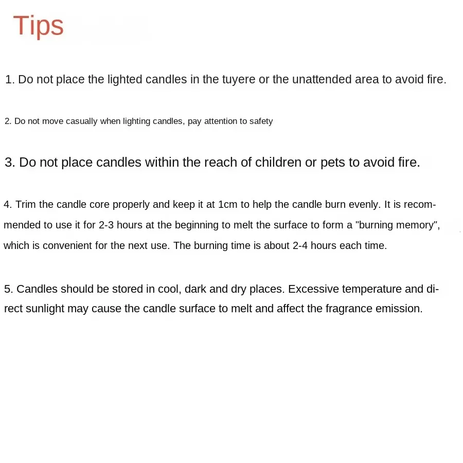 Handmade and non-mechanized mass production, so each candle cannot be guaranteed to be exactly the same.