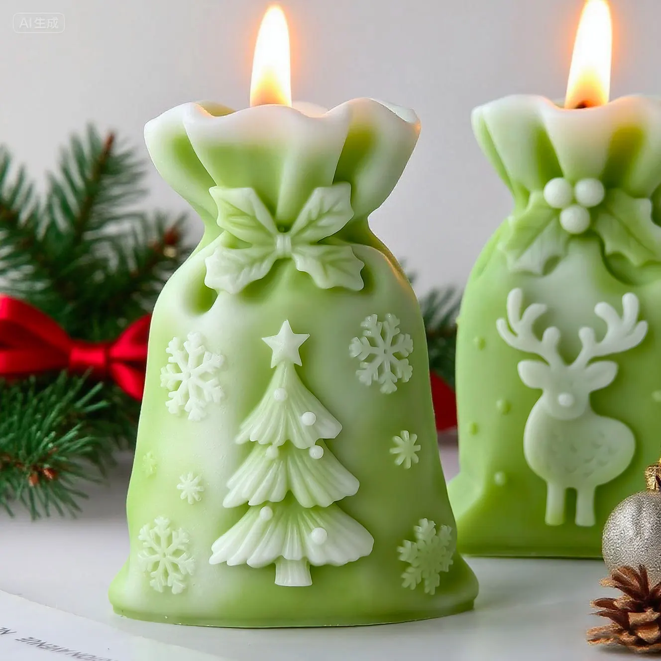 3D Christmas Gift Bag Relief Elk Tree Silicone Mold Handmade Aroma Candle Plaster Ornament Molds Candle Making Supplies