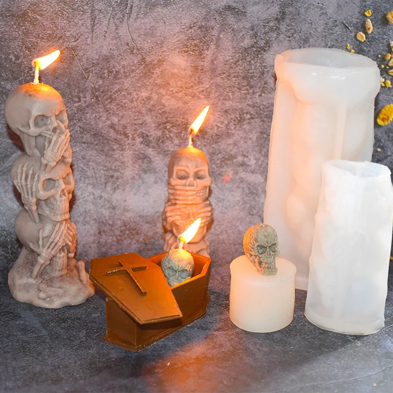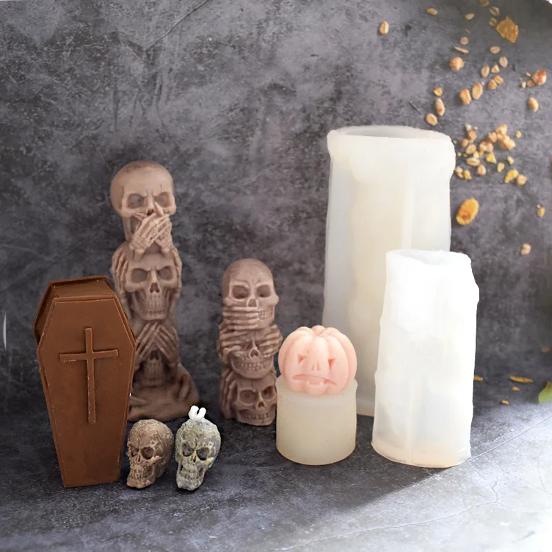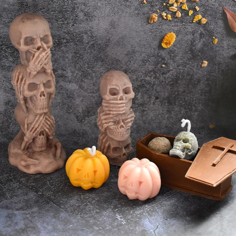 3D Ghost Skull Candle Silicone Mold DIY Halloween Horror Decoration Aromatherapy Candle Plaster Handmade Soap Mould Party Decors