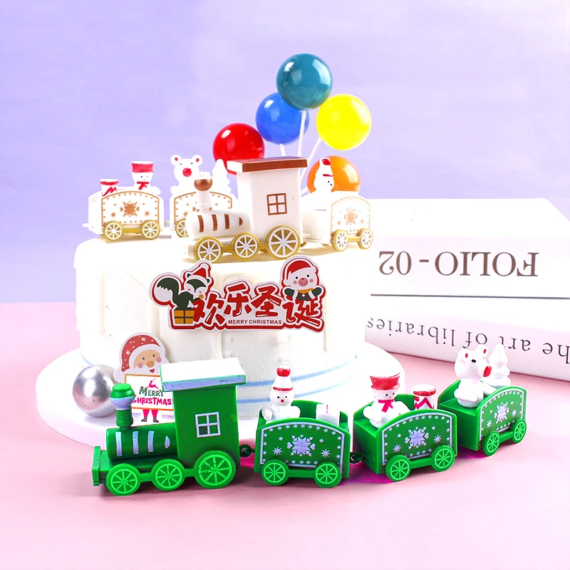 Christmas Decoration Cute Wooden Train Cake Decoration Baking Topper Small Train Ornaments Christmas Dessert Cake Party Ornament