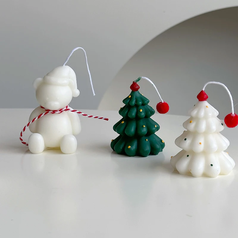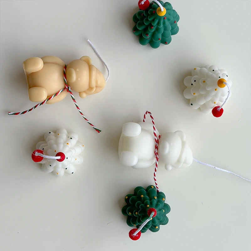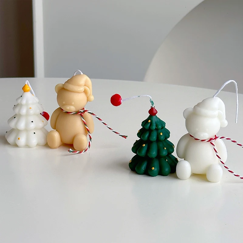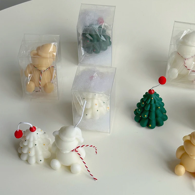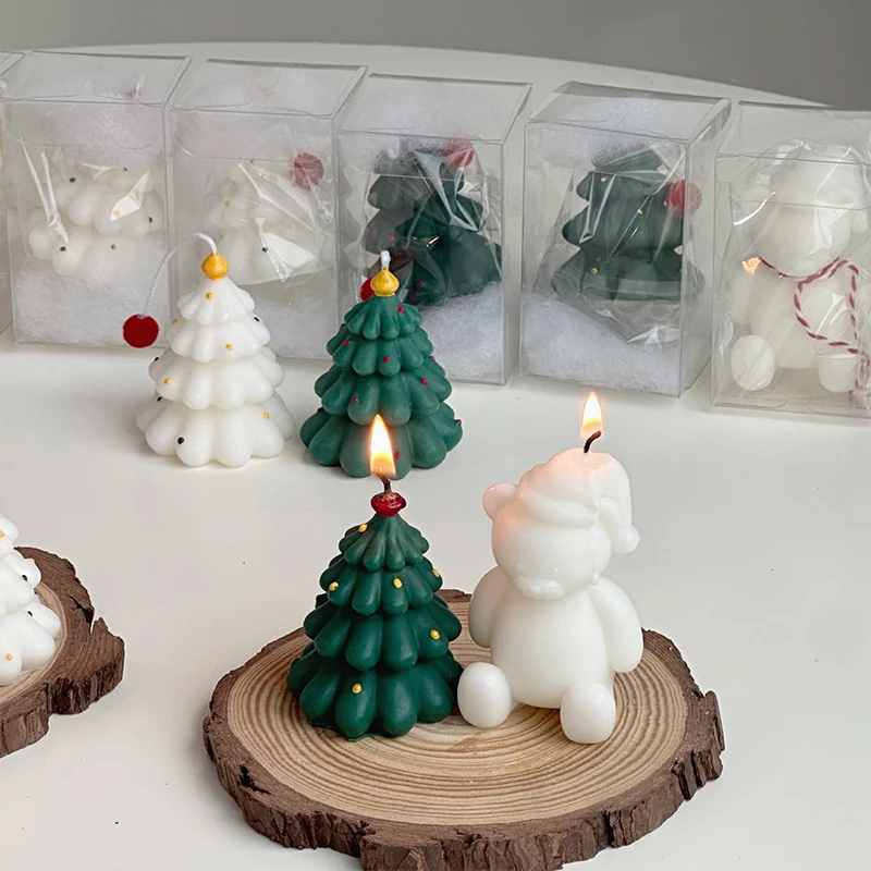 Creative Christmas Tree Candle Mini Atmosphere Cartoon Bear Shape Candle Xmas New Year Decor Handmade DIY Gift