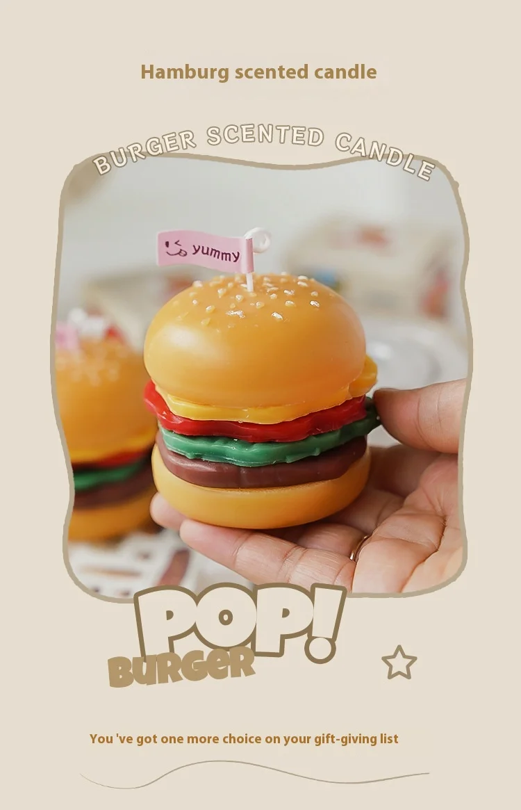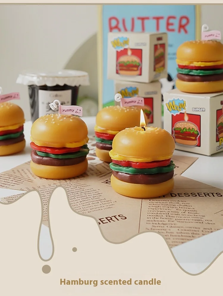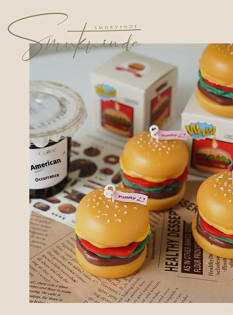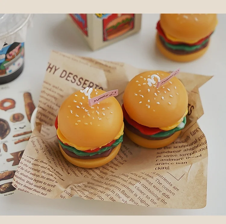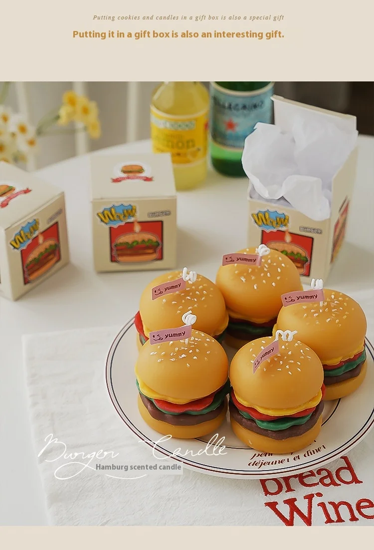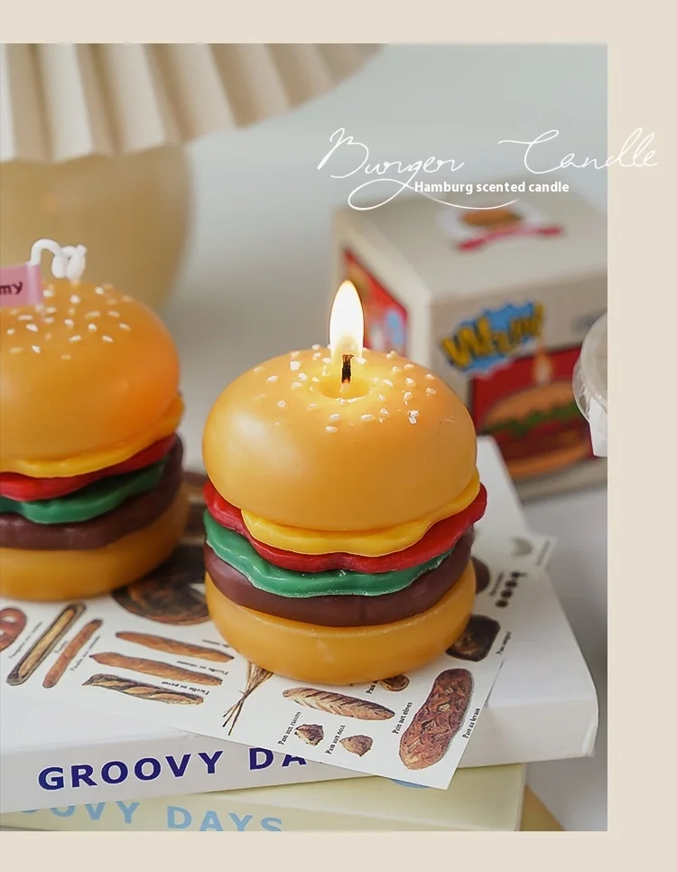 Cute And Creative Burger Aroma Candle Diy Handmade Aroma Decoration Ornament Simulation Food Candle Christmas Birthday Gift