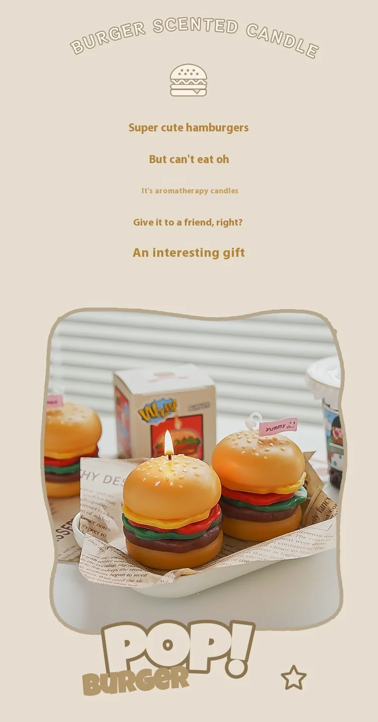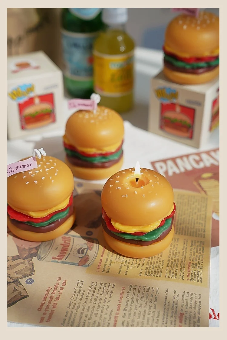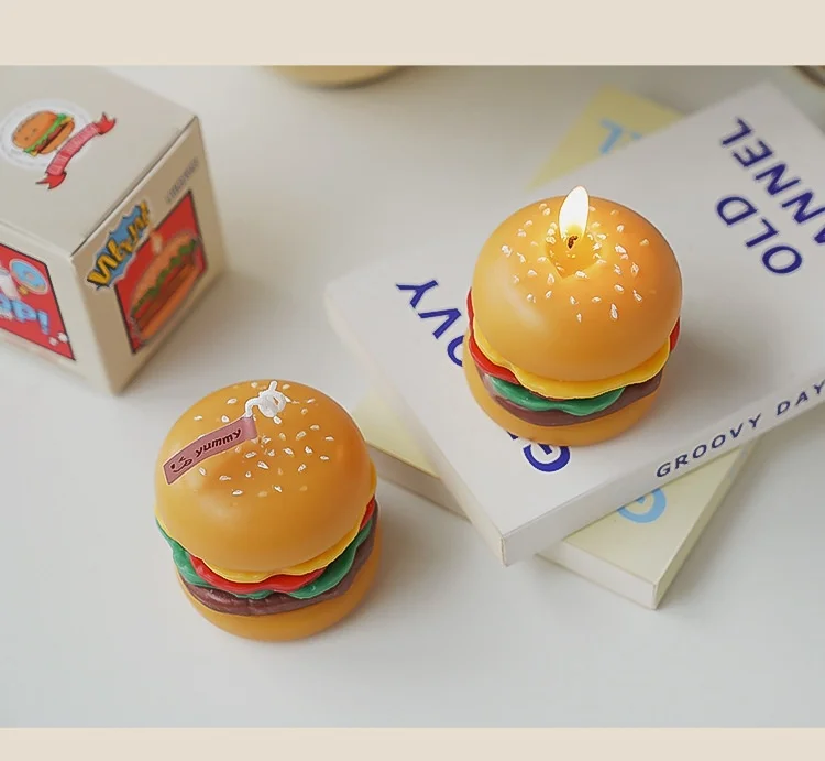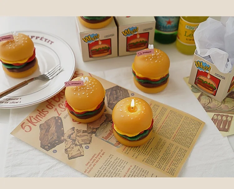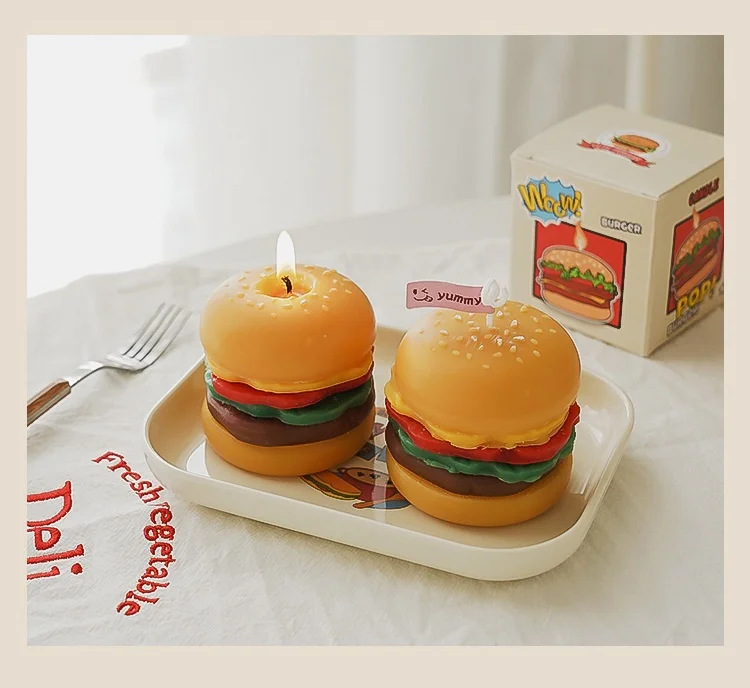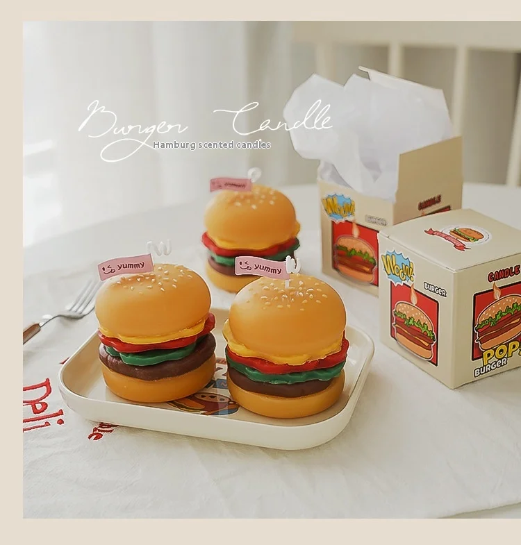 Cute And Creative Burger Aroma Candle Diy Handmade Aroma Decoration Ornament Simulation Food Candle Christmas Birthday Gift