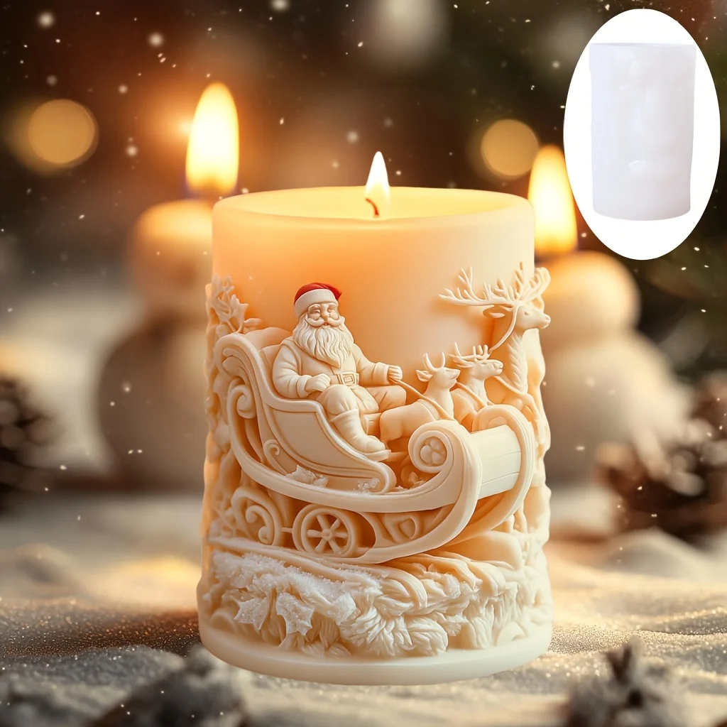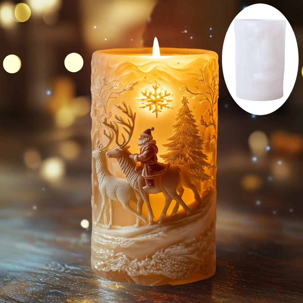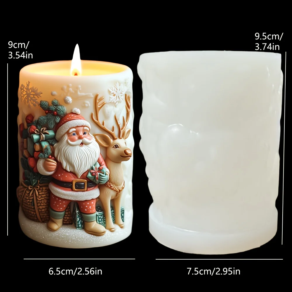 Santa Claus carrying gift relief cylindrical candle silicone mold Santa Claus reindeer Christmas gift relief gypsum resin molds